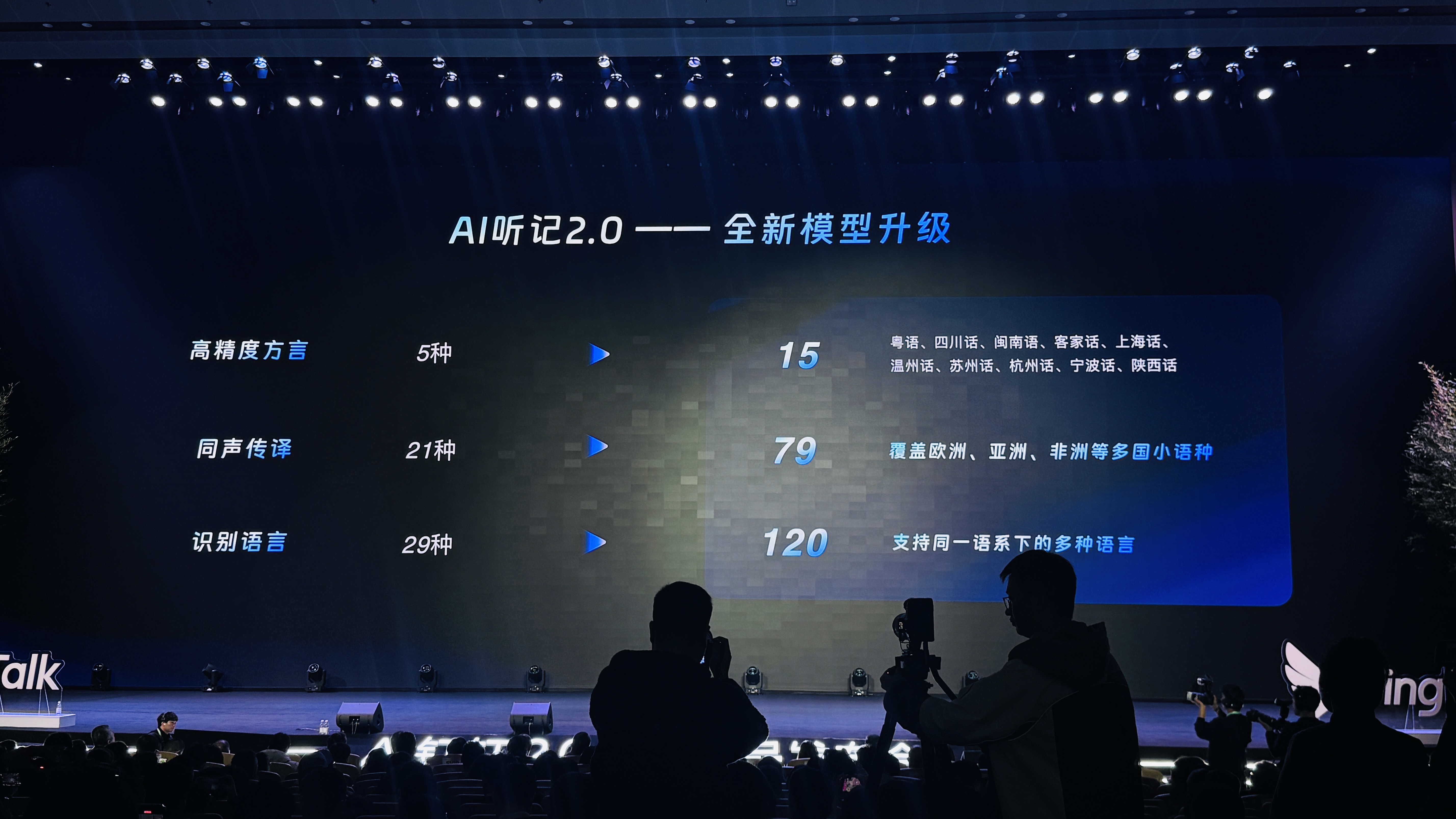 AI听记2.0全新晋级。 高精度方言支撑从5种提升到15种,同声传译从支撑21种言语提升到79种,辨认言语从29种提升至120种。这是一次对全球化场景的深度掩盖。